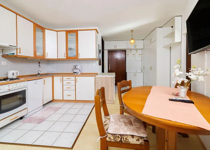Beschauliches Apartment Nur 500 Meter Zum Strand Mit Meerblick Und Waschmaschine includes a mini-kitchen where guests can cook and enjoy homemade meals. The nearest bus stop to Beschauliches Apartment Nur 500 Meter Zum Strand Mit Meerblick Und Waschmaschine is Srednja skola, which is approximately a 5-minute walk away.